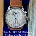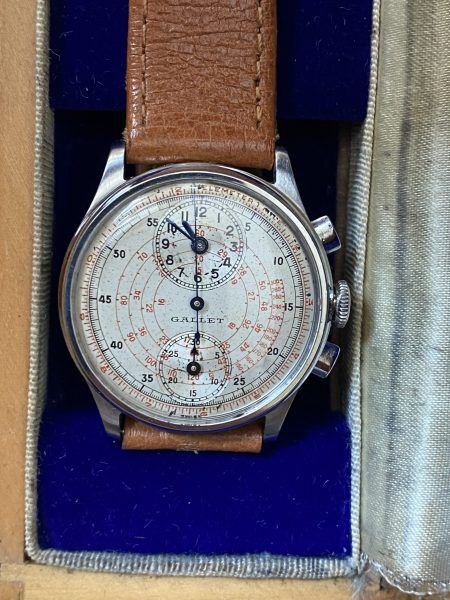 Comes in its very rare original “Gallet Chronographs” embossed wooded box – a valuable item in itself.