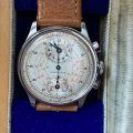 The Multichron Regulator was introduced by Gallet in the late 20’s, specifically designed for users who needed to prioritise timing (Doctors; Rally Drivers) over the time of the day. Featuring only a small subdial at 12 o’clock telling the time, the rest of the dial was reserved for the chronograph function with various scales used and a minute counter at 6 o’clock.