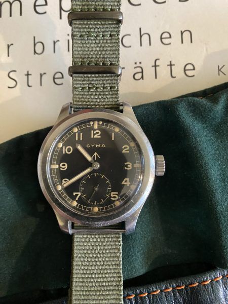 A superb original condition 1945 Cyma WWW Dirty Dozen WW2 British Army Military Issued wristwatch.