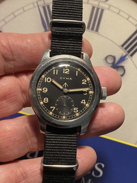 A superb original condition 1945 Cyma WWW Dirty Dozen WW2 British Army Military Issued wristwatch.