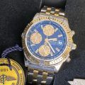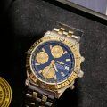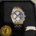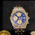 This is a Breitling Chronomat Evolution, D13352 model, featuring a blue dial with gold-tone accents and a two-tone stainless steel and gold bracelet