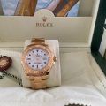 The watch comes with everything including: inner and outer Rolex boxes; solid gold bracelet; hang/tag; Warranty Card; Yachtmaster Booklet Rolex Wallets; Goldmiths Booklet.