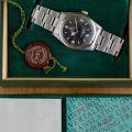 It comes with its full set, inner and outer boxes, CSOC Punched Papers and Hang Tags and on its original matching year Oyster bracelet.
