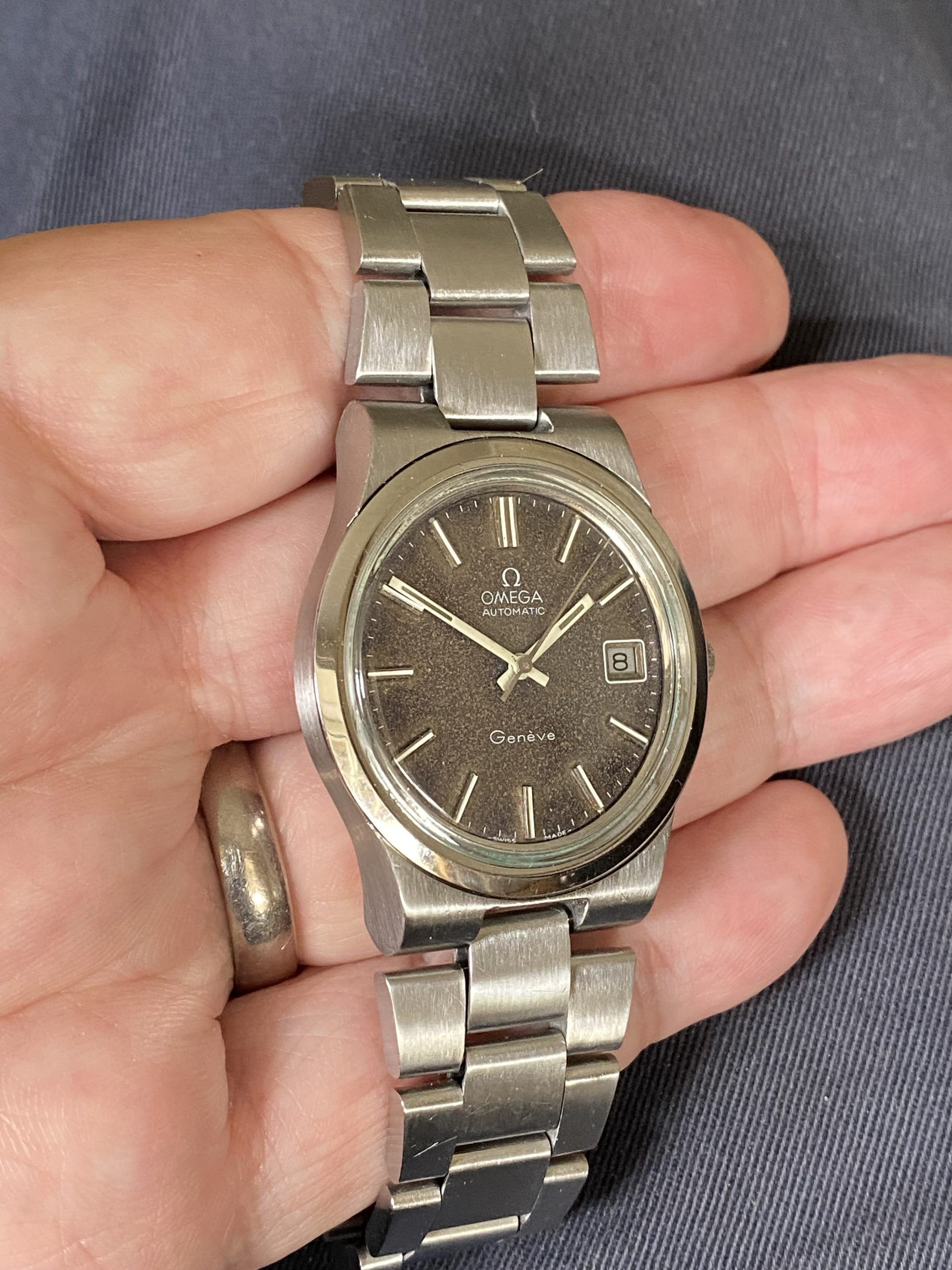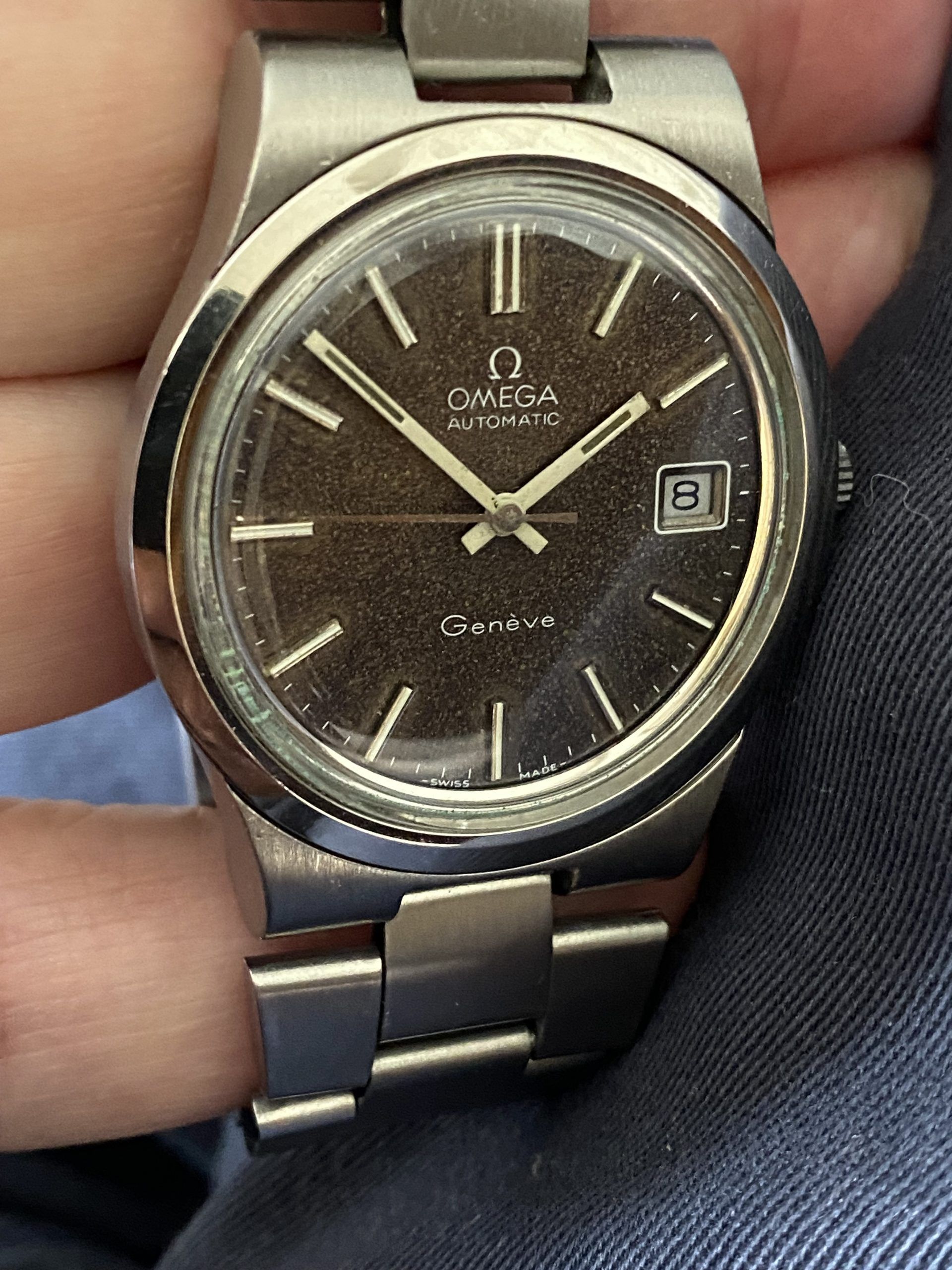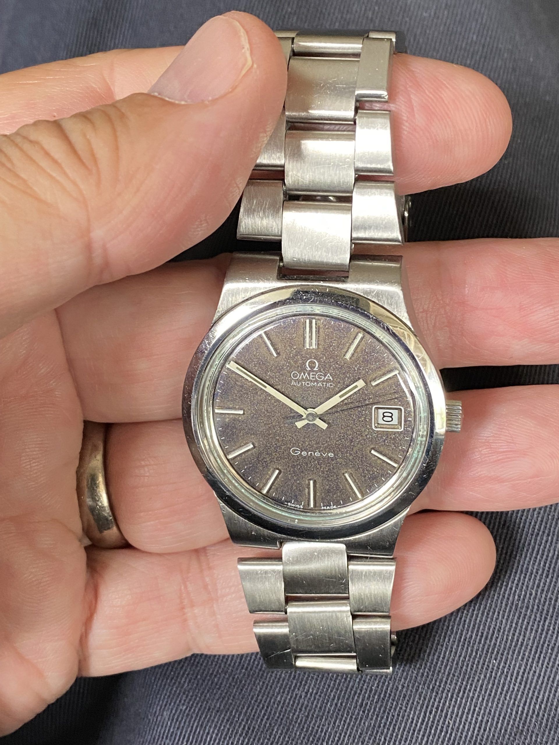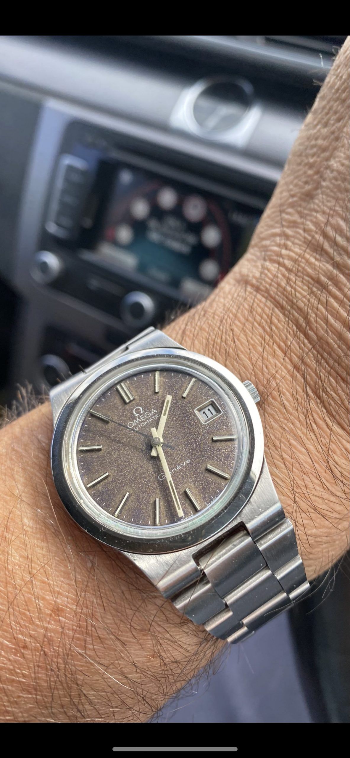 Absolutely gorgeous 1970’s vintage Omega with a stunning original charcoal dial turning a lovely purple.