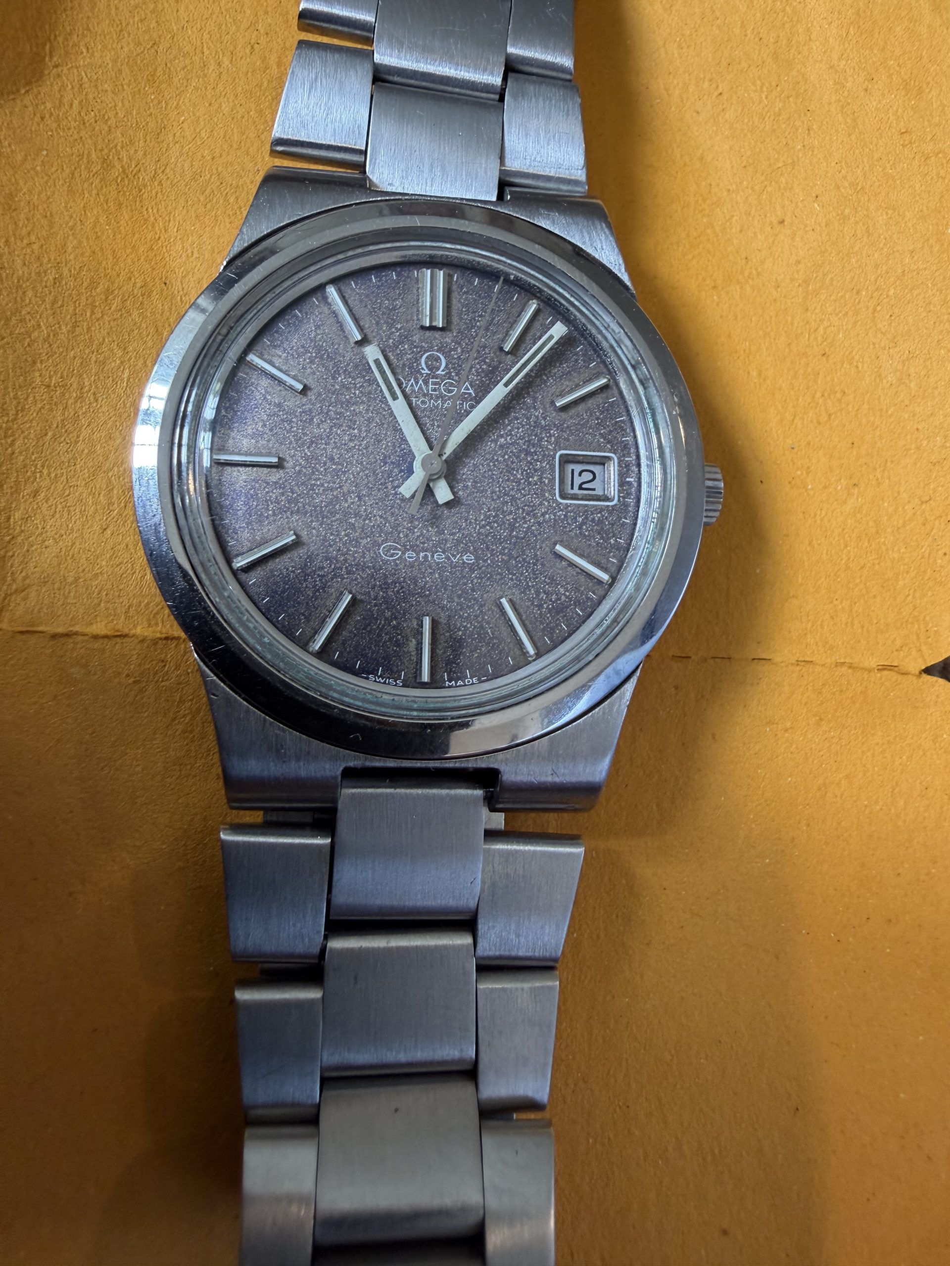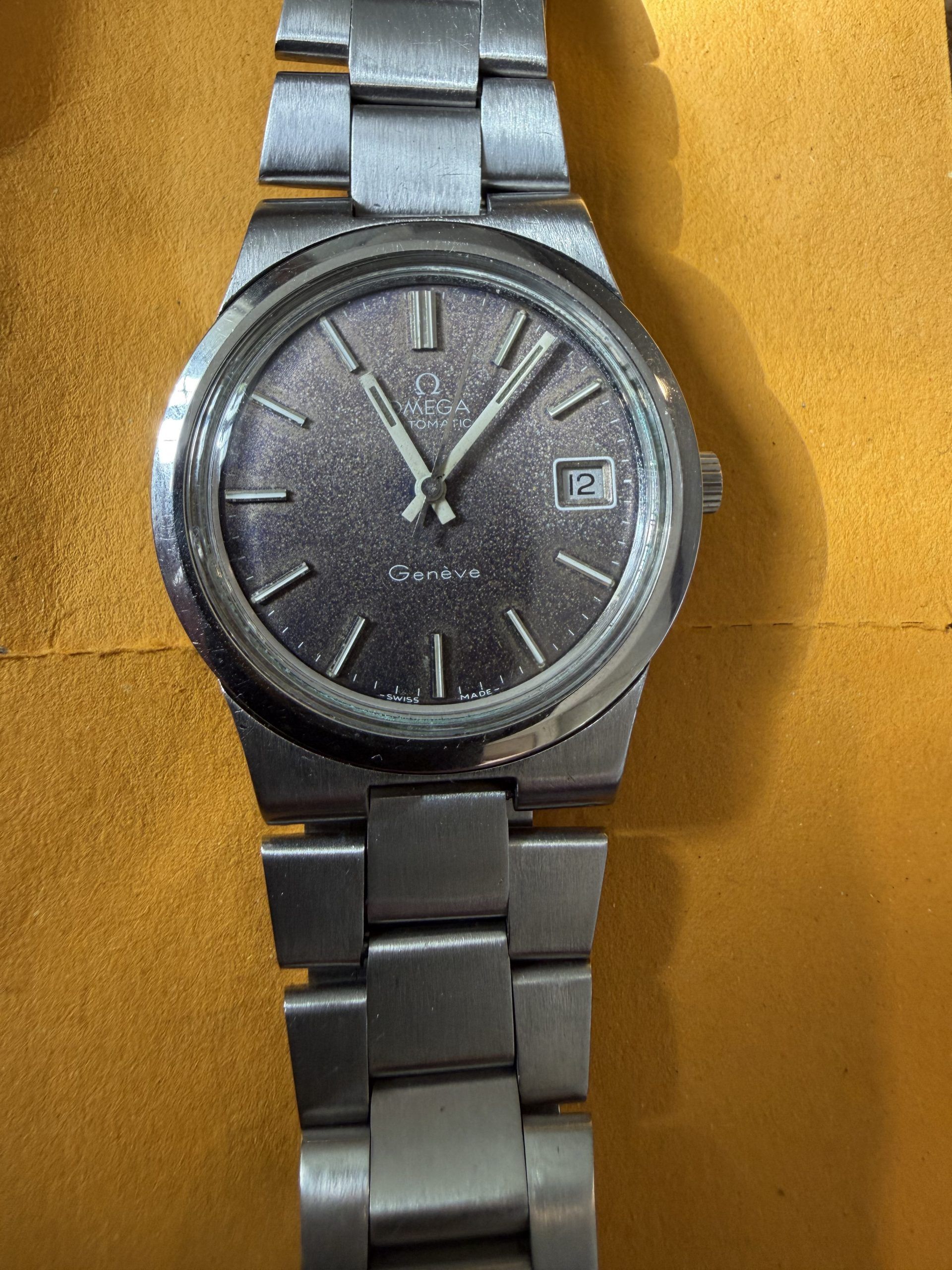 Absolutely gorgeous 1970’s vintage Omega with a stunning original charcoal dial that has turned a lovely even Tropical dark purple over time, much sought-after by collectors.