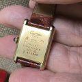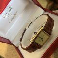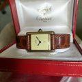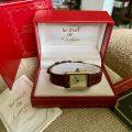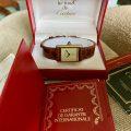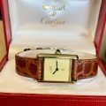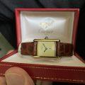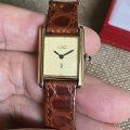Beautiful original condition Cartier Tank Vermeil with rare Lemon Dial in superb condition with Cartier Signed Manual Winding Movement and Cartier Box and Paperwork.