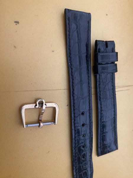 Here we have a beautiful combination of a vintage Omega new old stock black leather strap purchased from a retiring Omega Watchmaker and a genuine vintage solid 9 carat gold Omega buckle that together will enhance your Vintage Omega Watch