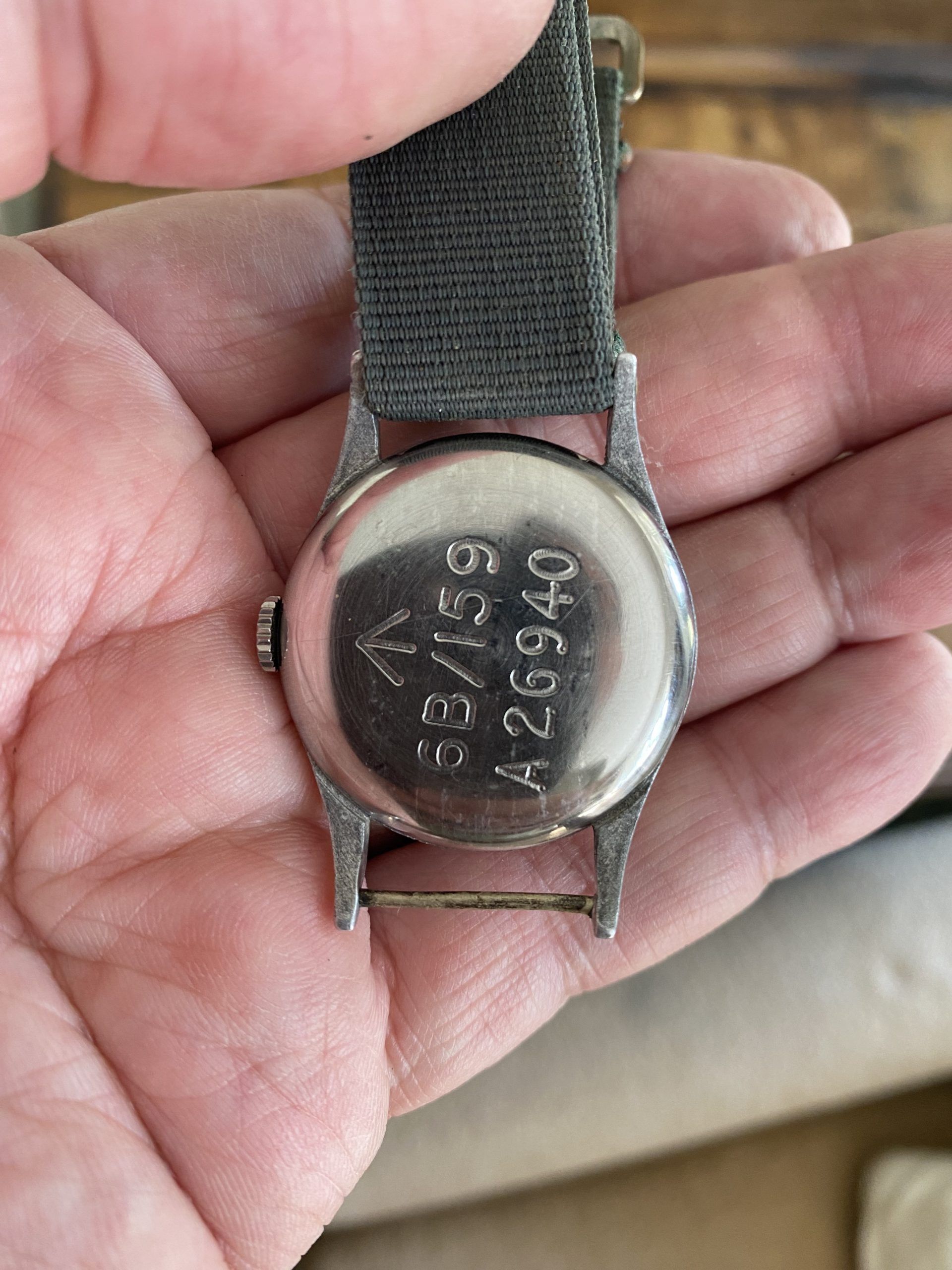WW2 British Pilot’s Military Wristwatch 6B/159 Issued in 1943. Very Hard to find in all Original condition, full length lugs original dial and blued steel hamd