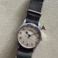 the stainless steel case-back is correctly stamped with Air Ministry RAF military issue markings.