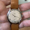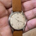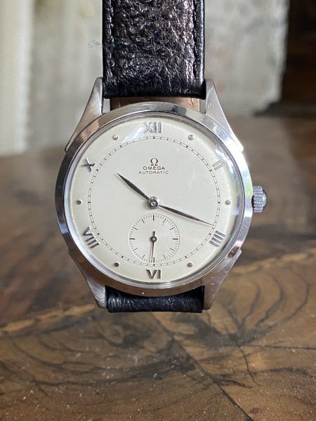 1946 Omega “bumper” Automatic wrist watch in all Stainless Steel case with special two part case-back, ref. 2374/6. Large “Jumbo” 35mm case (not counting the winder).