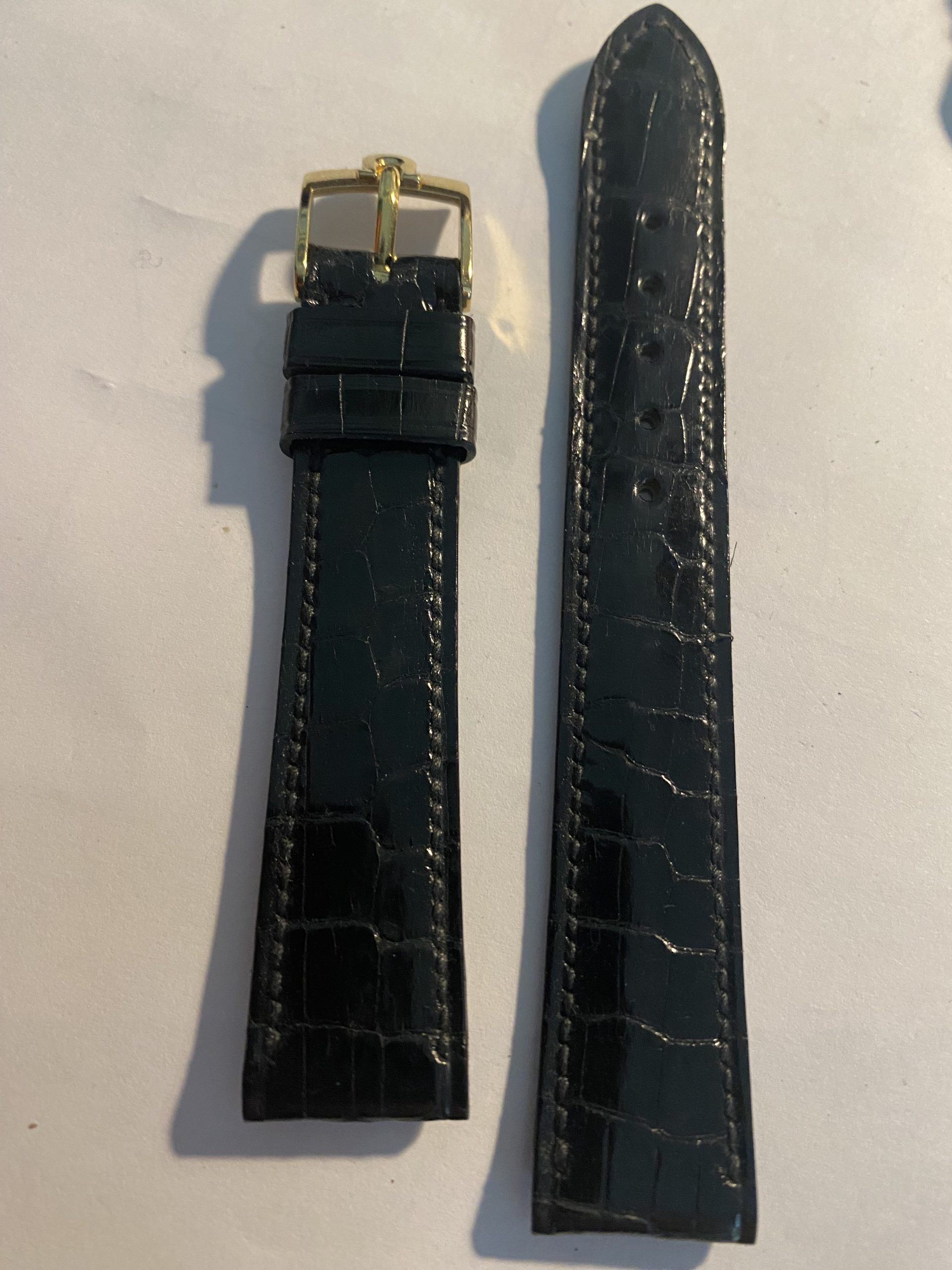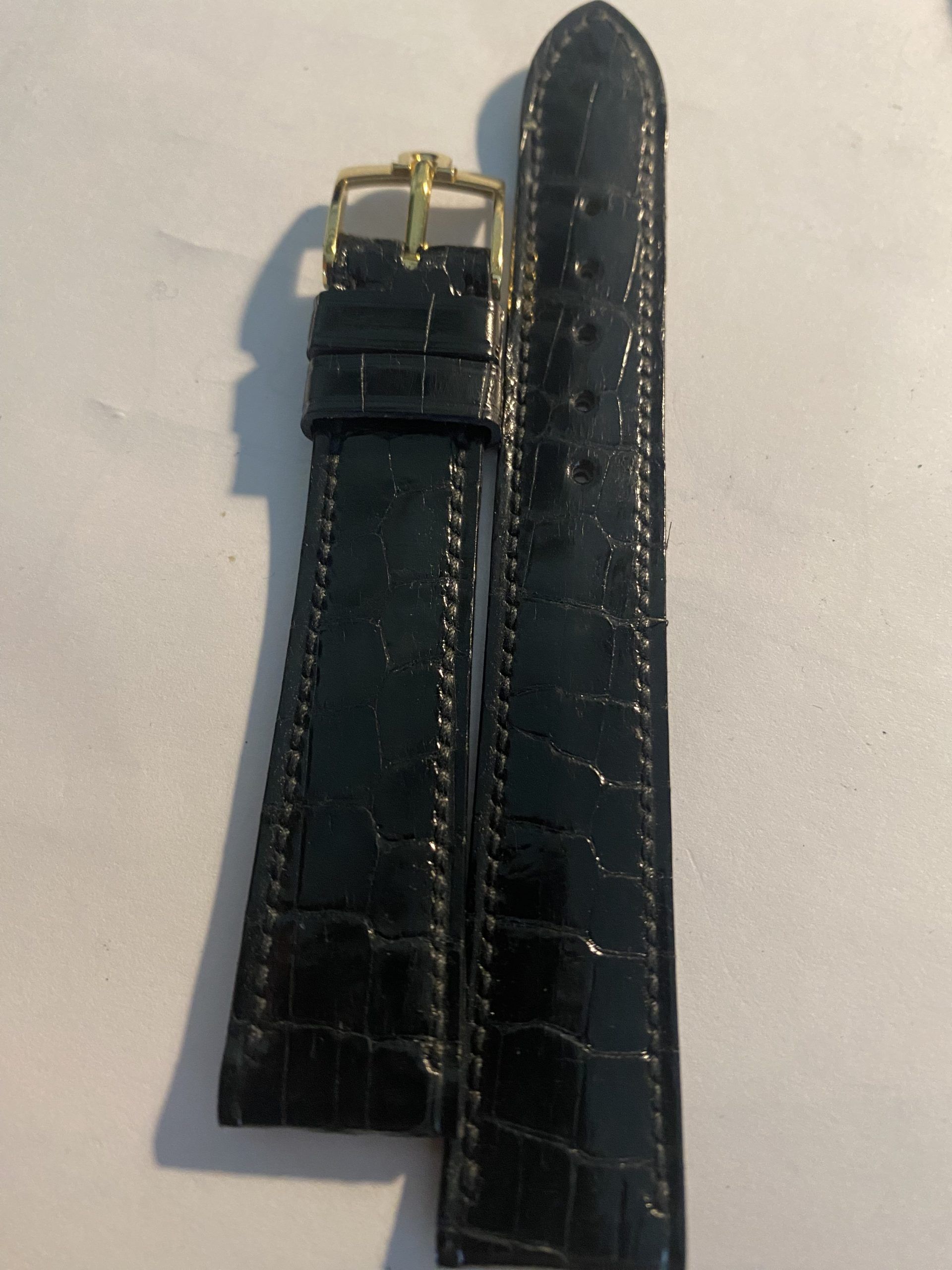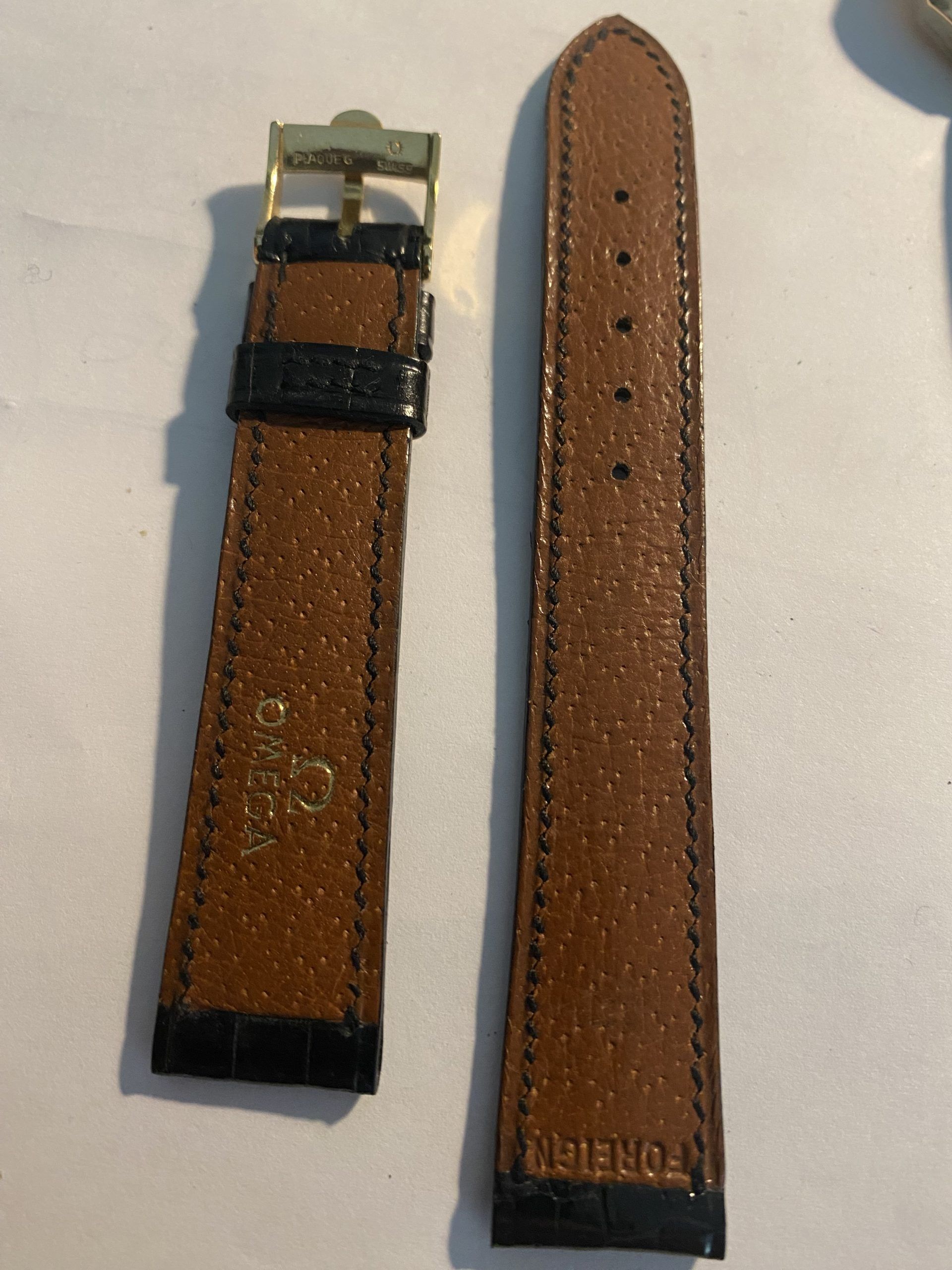 Perfect to too sob off your treasured gold 1960’s/1960’s Vintage O Eva, this new old stock never been used on a watch before black Aligator Strap with gold embossed Knega and correctly stamped vintage Omega Gold buckle is the perfect set.