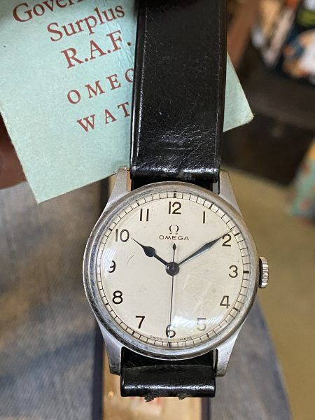 Very rare to find this super rare 1943 Omega Royal Navy Fleet Air Arm Fighter Pilot’s watch complete with its original:-