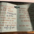 1948 Omega official Decommissioning Papers with the Watch’s Serial Number and Issue Number on them;